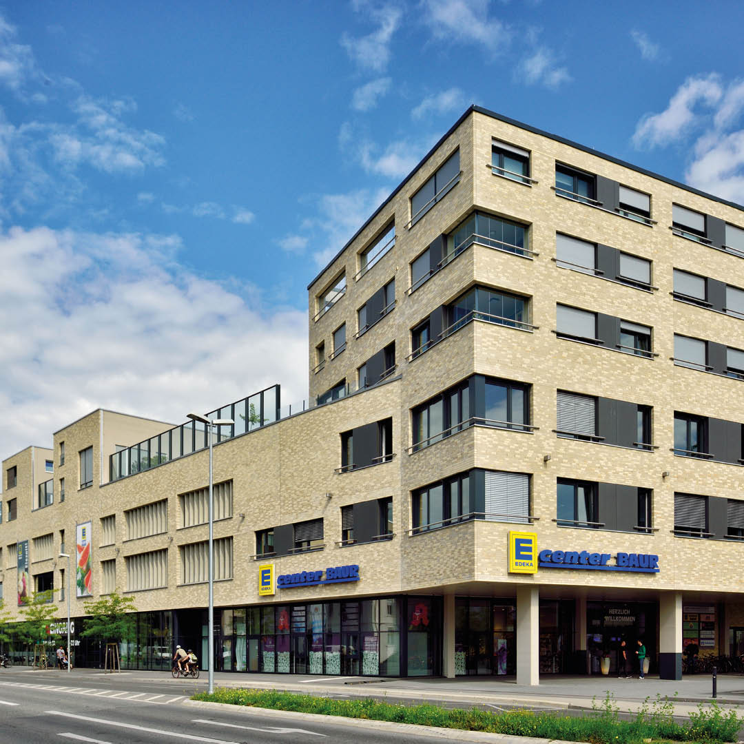 „Super Konzept – super Angebot – super Markt“ so lautet in aller Kürze die positive Resonanz zum Flaggschiff der Frischemärkte-BAUR Unternehmensgruppe. Seit der Eröffnung im November 2011 schreibt das E-Center, im modernen rechtsrheinischen Petershausen am Seerhein gelegen, eine Erfolgsgeschichte, die ihresgleichen sucht. Sie gipfelte 2014 in der Auszeichnung „Bestes E-Center Deutschlands“. Im zugehörigen Parkhaus finden sich auf zwei Ebenen 400 Parkplätze.